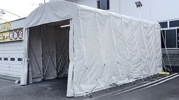 - 簡単な設営: 折り畳み式の柱フレームを採用しており、設営が非常に簡単です。リフトを使用することで、スムーズに設置できます。